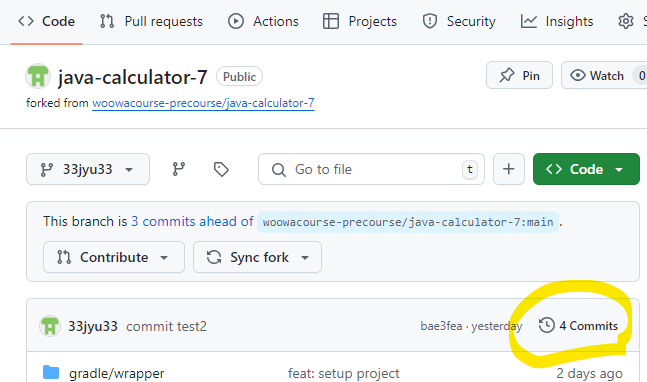 - gitHub에서도 공개된 원격 저장소의 commit 기록을 확인할 수 있다.